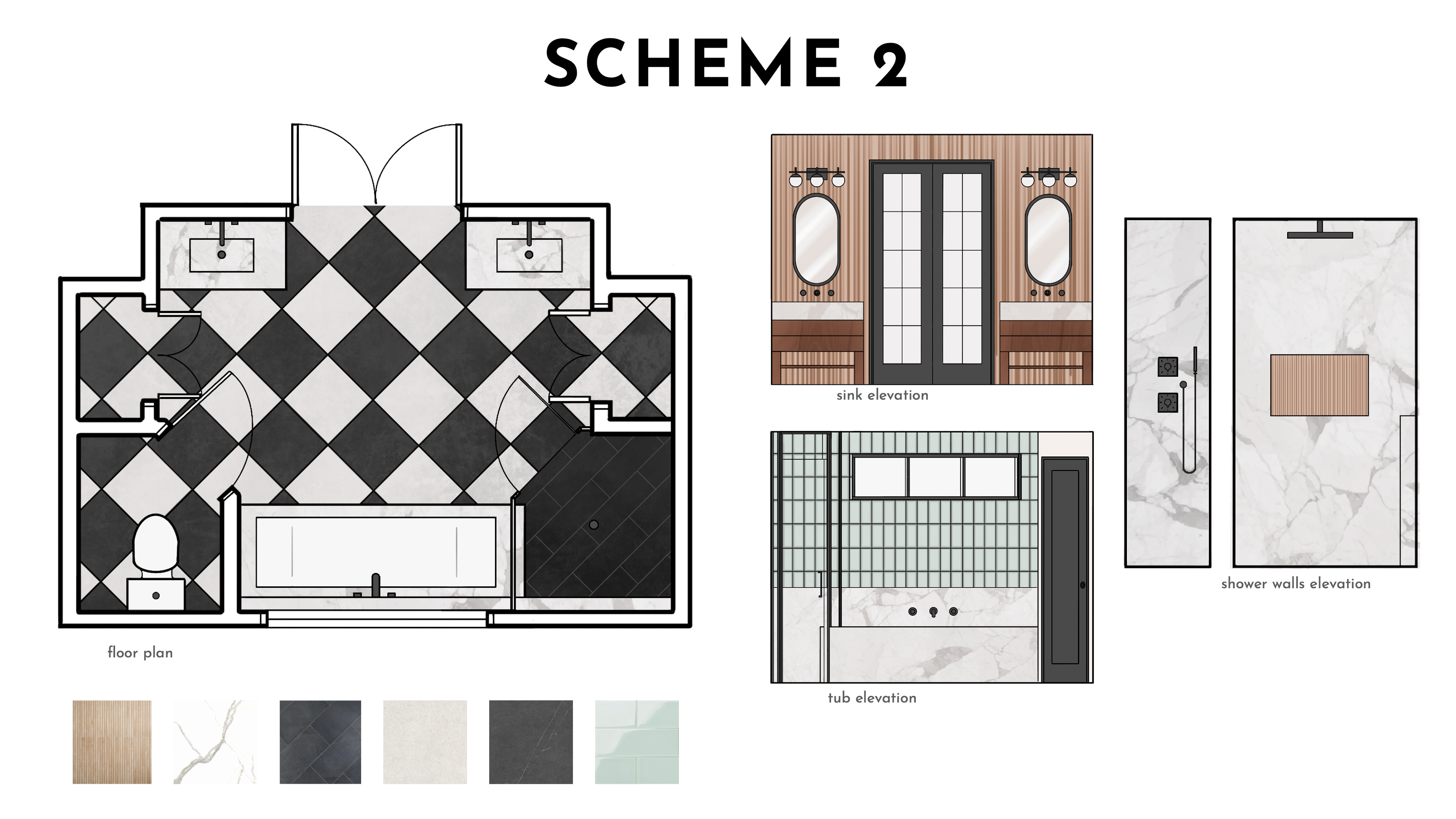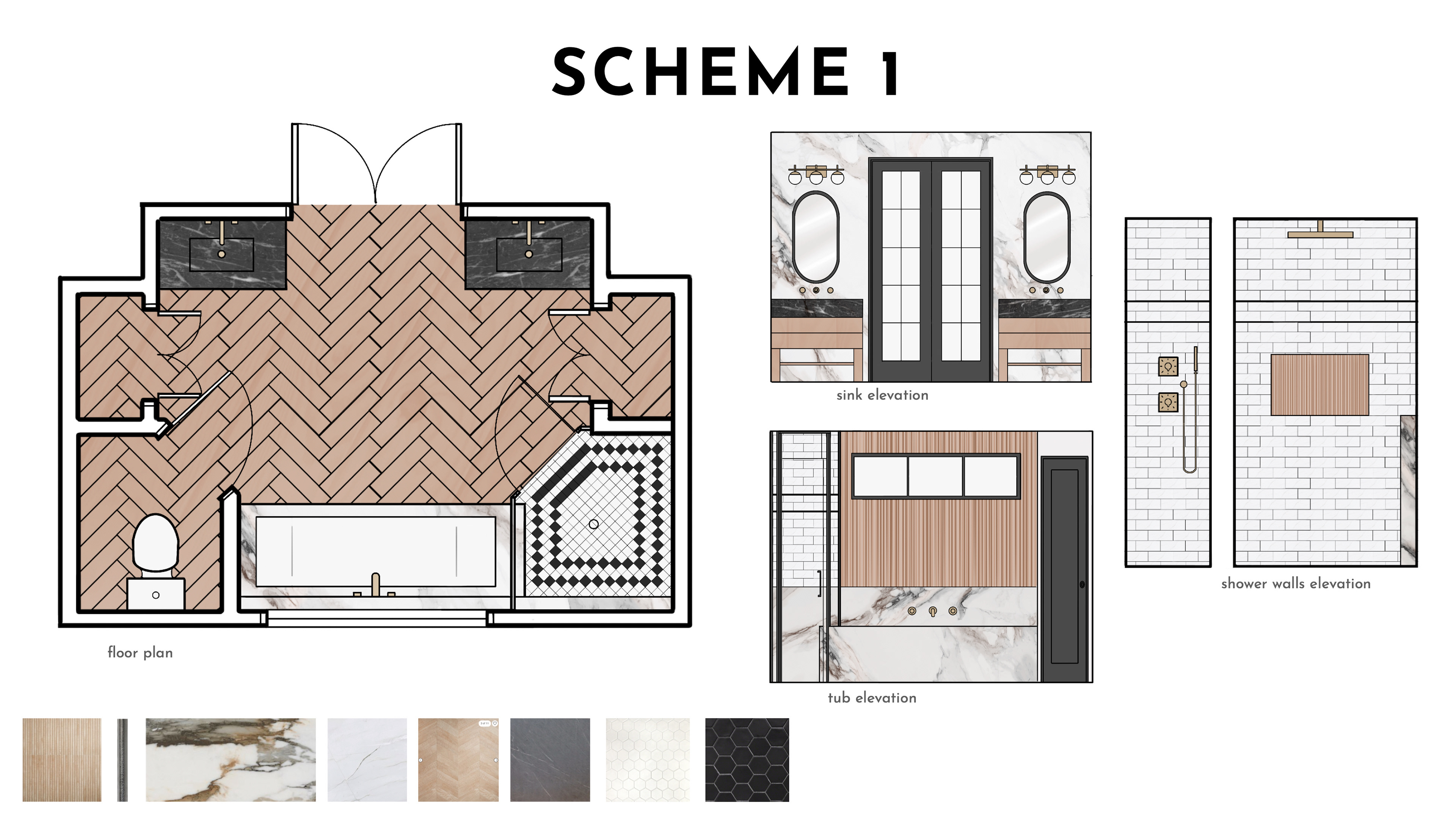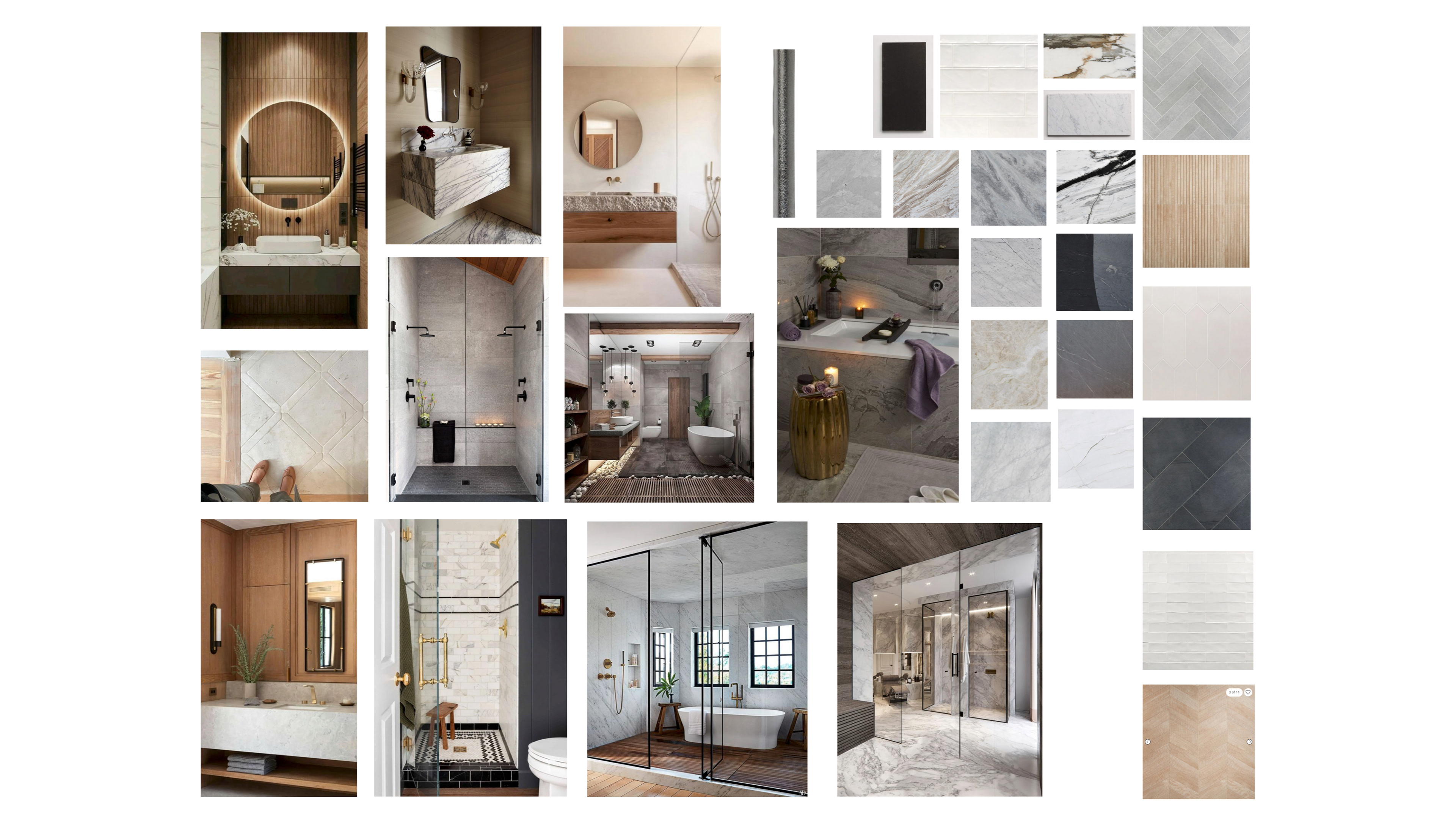 Sourcing finishes and fixtures for a bathroom.