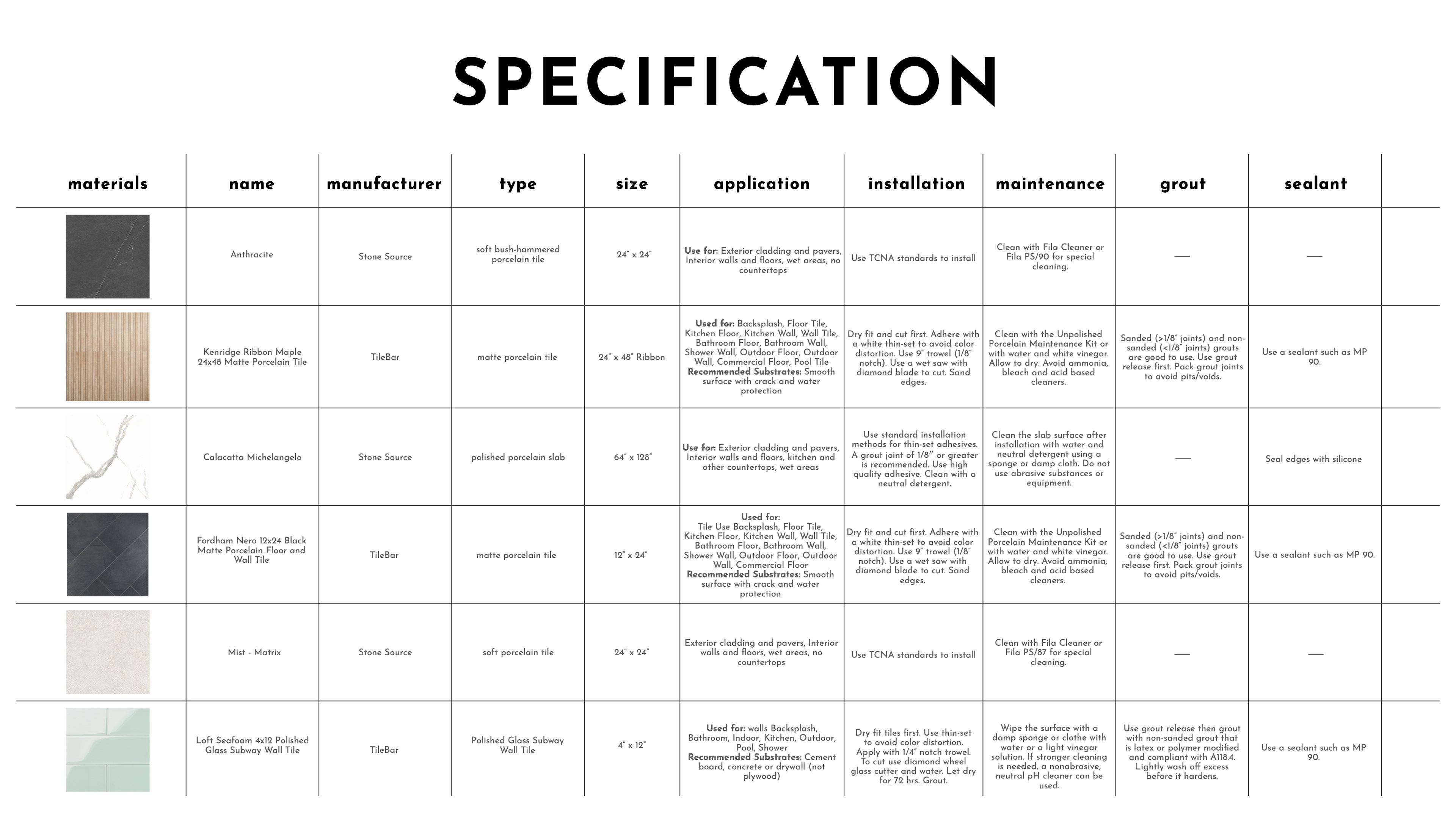 To develop skills in FF&E sourcing and tile specifications